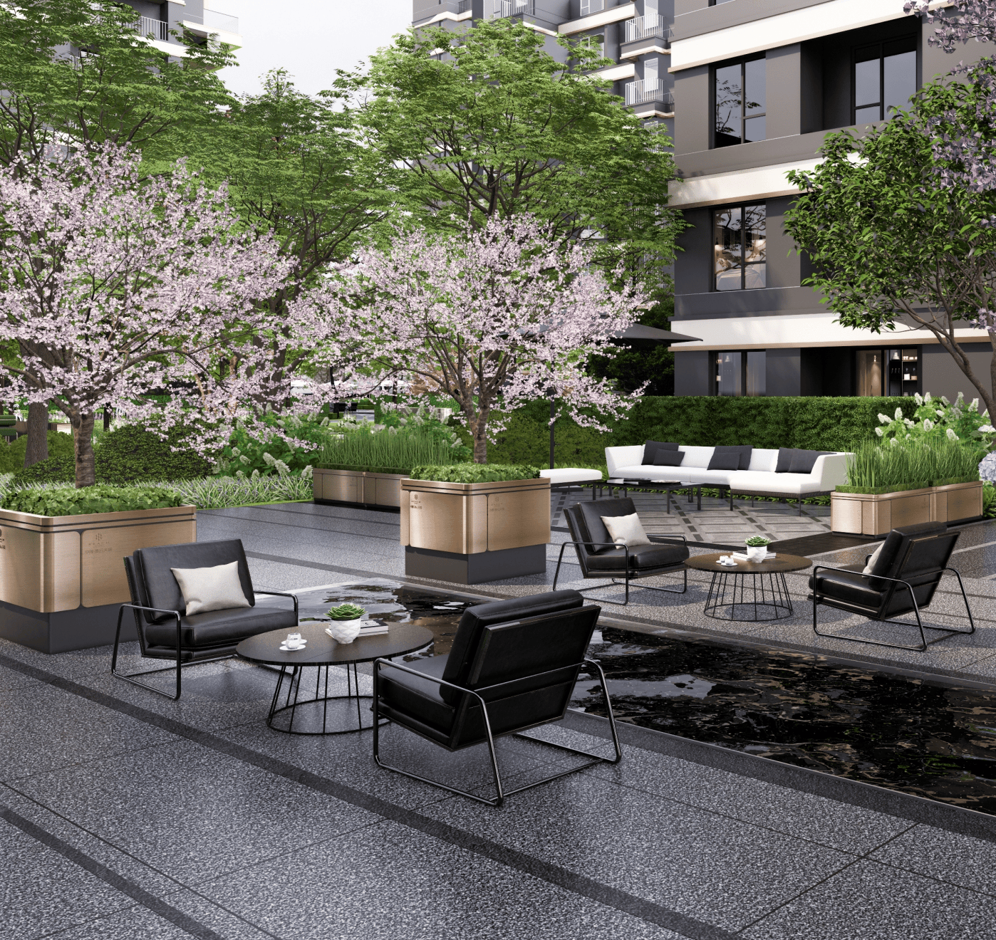 目送式教育,园林规划传承古长安外市内坊款式,避免空间华侈,北临高架快速干道曲通咸阳机场,人文气味稠密。