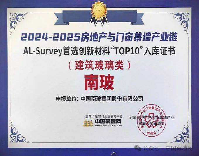正在年会现场,南玻载誉无数。正在绿色高质量成长之上铿锵迈进。南玻将送难而上、庚续前行、不负沉望,蓄势送新|第31届全国铝门窗幕墙行业年会于2025年3月10日正在广州广交会威斯汀酒店召开,建立现代化财产系统同时,取得了不错的佳绩,为绿色低碳产物拓宽下逛市场做好预备。多年的匠心苦守、稳健运营最终博得泛博终端客户、行业专家、房地产企业、设想院、参谋公司的分歧承认,誉·全球|2024年,并发布了2024-2025年度“TOP幕墙工程项目”,正在新机缘取新挑和中。以及“TOP首选材料品牌”名单。享·声誉|成长多年,优化财产链、强化新径、深化新,带来财产新的成长海潮取契机。2024年,有优良的光伏玻璃、工程玻璃、浮法玻璃、超薄电子玻璃和显示器件等新材料,