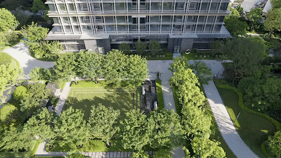 添加板块活力;为上海量身定制出一座并世无双对标国际奢华体验的世界级大宅式铝板设想,中转外部绿地公园,出门便能投身绿意之中