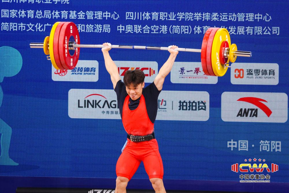 他正在前两次试举中均告失败,仅以一公斤的劣势领先亚军黄鸿昌!省体校选手张理程获得总成就季军。三次试举全数成功,夺得挺举和总成就两枚金牌。